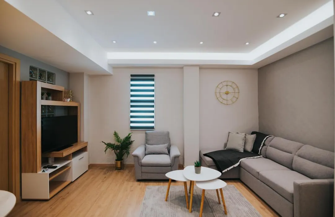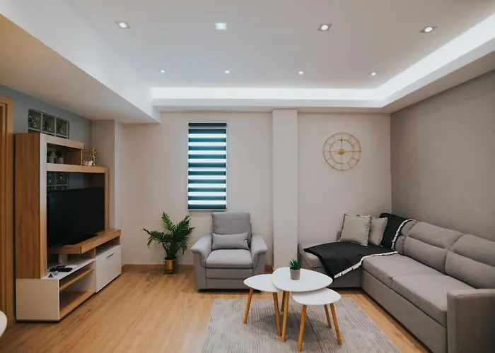 New Cozy By The Sea Apartment ferielejlighed ligger i Thessaloníki, 15 km fra Thessaloniki lufthavn, og tilbyder WiFi i hele ejendommen. Indkvarteringen har også et fuldt udstyret køkken samt en sofa, kaffe- og tefaciliteter, et opholdsområde i hvert værelse.